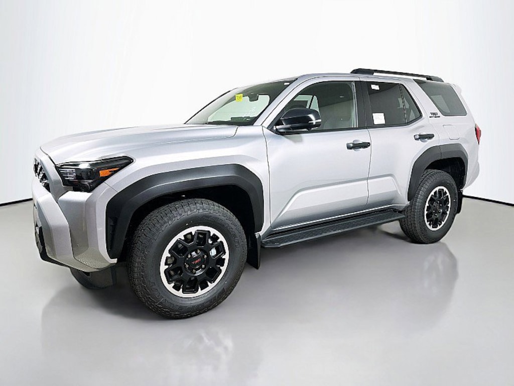 4Runner TRD Off-Road Premium, 4D Sport Utility, 2.4L 4-Cylinder, 8-Speed Automatic, 4WD, CUTTING EDGE, Black, 15 Speakers, 4-Wheel Disc Brakes, 4Runner All Weather Cargo Tray (TMS), 4Runner All Weather Floor Mats (TMS), ABS brakes, Air Conditioning, AM/FM radio: SiriusXM, Apple CarPlay/Android Auto, Auto High-beam Headlights, Auto-dimming Rear-View mirror, Automatic temperature control, Brake assist, Compass, Driver door bin, Driver vanity mirror, Electronic Stability Control, Exterior Parking Camera Rear, Front & Rear Molded Black 4Runner Mudguards (TMS), Front Bucket Seats, Front Center Armrest, Front dual zone A/C, Front fog lights, Front reading lights, Heated & Ventilated Front Bucket Seats, Heated door mirrors, Heated front seats, Illuminated entry, Intelligent Inside Rear View Mirror, Interior D-Pillar Cargo Lights (TMS), Leather Shift Knob, Leather steering wheel, Memory seat, Moonroof, Navigation System, Outside temperature display, Overhead console, Panic alarm, Passenger door bin, Passenger vanity mirror, Power door mirrors, Power driver seat, Power passenger seat, Power windows, Radio: 14" Audio, Rear seat center armrest, Rear window defroster, Rear window wiper, Remote keyless entry, Security system, Speed control, Speed-sensing steering, Split folding rear seat, Spoiler, Steering wheel mounted audio controls, Synthetic Seat Trim, Tachometer, Telescoping steering wheel, Tilt steering wheel, Traction control, Trip computer, Turn signal indicator mirrors, Ventilated front seats, Wheels: 18" Matte-Black Painted. 2025 Toyota 4Runner TRD Off-Road PremiumThis is a guide only. See salesperson for additional information. All vehicles subject to prior sale. The dealership does not assume any responsibility for accuracy of the values, sale price, interest rates, terms, monthly payment, equipment, mileage, or for any errors or omissions of the dealership. Please verify all information for accuracy prior to purchase. Price plus tax, title, and a $387 documentary fee . INCLUDES TOYOTACARE -ToyotaCare is a no cost maintenance plan with 24-hour roadside assistance. The ToyotaCare plan covers normal factory scheduled service for 2 years or 25,000 miles, whichever comes first1. 24-hour roadside assistance is also included for 2 years, regardless of mileage.