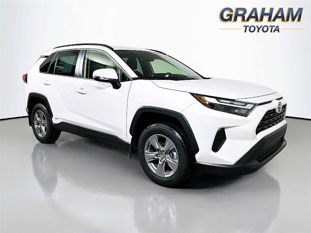 RAV4 Hybrid LE, 4D Sport Utility, 2.5L 4-Cylinder, eCVT, AWD, ICE CAP, Black Fabric Cloth, 4-Wheel Disc Brakes, 6 Speakers, ABS brakes, Air Conditioning, All Weather Floor Liners & Cargo Tray (TMS), Alloy wheels, AM/FM radio: SiriusXM, Auto High-beam Headlights, Automatic temperature control, Blind Spot Monitor & Rear Cross Traffic Alert, Brake assist, Driver door bin, Driver vanity mirror, Electronic Stability Control, Exterior Parking Camera Rear, Fabric Seat Trim, Four wheel independent suspension, Front Bucket Seats, Front Center Armrest, Front dual zone A/C, Front reading lights, Illuminated entry, Mudguards (TMS), Outside temperature display, Overhead console, Panic alarm, Passenger vanity mirror, Power door mirrors, Power windows, Quick Charge Cable (TMS), Radio data system, Radio: AM/FM/XM Audio System, Rear Dual USB Power Port Charger (TMS), Rear seat center armrest, Rear window defroster, Rear window wiper, Remote keyless entry, Speed control, Speed-sensing steering, Split folding rear seat, Spoiler, Steering wheel mounted audio controls, Telescoping steering wheel, Tilt steering wheel, Traction control, Trip computer. 2025 Toyota RAV4 Hybrid LEThis is a guide only. See salesperson for additional information. All vehicles subject to prior sale. The dealership does not assume any responsibility for accuracy of the values, sale price, interest rates, terms, monthly payment, equipment, mileage, or for any errors or omissions of the dealership. Please verify all information for accuracy prior to purchase. Price plus tax, title, and a $398 documentary fee . 41/38 City/Highway MPG INCLUDES TOYOTACARE -ToyotaCare is a no cost maintenance plan with 24-hour roadside assistance. The ToyotaCare plan covers normal factory scheduled service for 2 years or 25,000 miles, whichever comes first1. 24-hour roadside assistance is also included for 2 years, regardless of mileage.