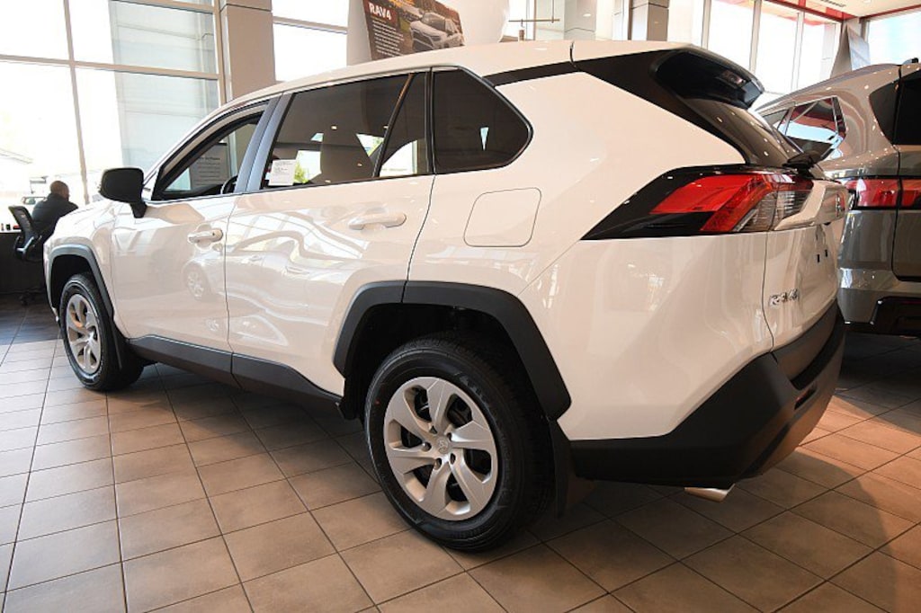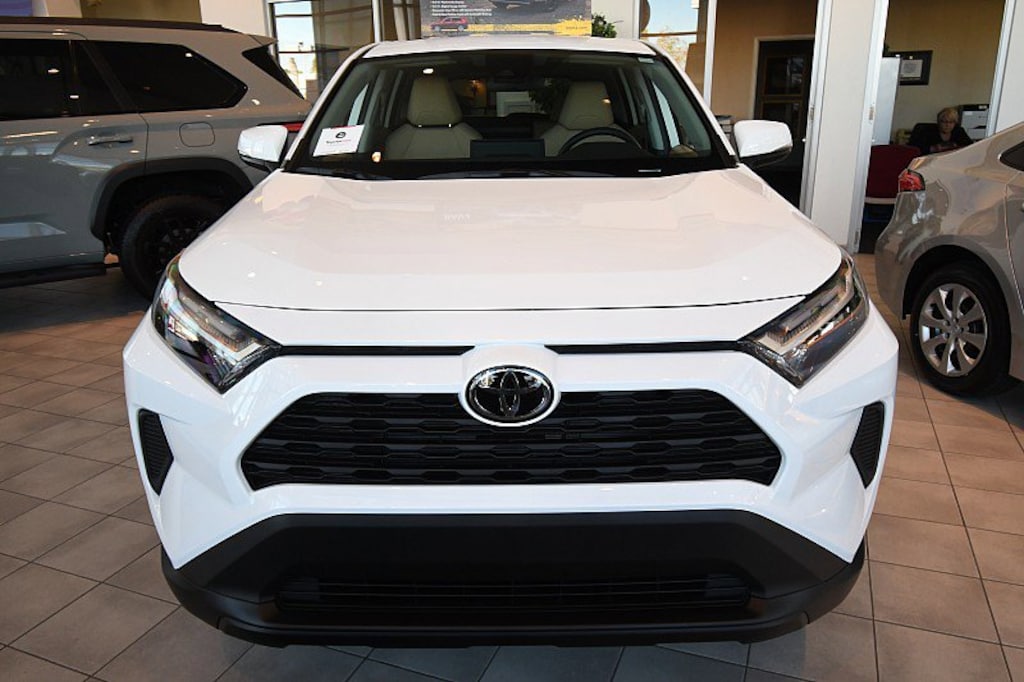 RAV4 LE, 4D Sport Utility, 2.5L 4-Cylinder DOHC Dual VVT-i, 8-Speed Automatic, AWD, ICE CAP, Fabric Nutmeg Cloth, 4-Wheel Disc Brakes, 6 Speakers, ABS brakes, Air Conditioning, All Weather Floor Liners & Cargo Liner (TMS), AM/FM radio: SiriusXM, Auto High-beam Headlights, Blind Spot Monitor w/RCTA, Brake assist, Door Sill Protector (TMS), Driver door bin, Driver vanity mirror, Electronic Stability Control, Exterior Parking Camera Rear, Fabric Seat Trim, Four wheel independent suspension, Front Bucket Seats, Front Center Armrest, Front reading lights, Illuminated entry, Mudguards (TMS), Outside temperature display, Overhead console, Panic alarm, Passenger door bin, Passenger vanity mirror, Power door mirrors, Power windows, Radio data system, Radio: AM/FM/XM Audio System, Rear Cargo Area Cover, Rear seat center armrest, Rear window defroster, Rear window wiper, Remote keyless entry, Speed control, Speed-sensing steering, Split folding rear seat, Spoiler, Steering wheel mounted audio controls, Tachometer, Telescoping steering wheel, Tilt steering wheel, Traction control, Trip computer. 2025 Toyota RAV4 LEThis is a guide only. See salesperson for additional information. All vehicles subject to prior sale. The dealership does not assume any responsibility for accuracy of the values, sale price, interest rates, terms, monthly payment, equipment, mileage, or for any errors or omissions of the dealership. Please verify all information for accuracy prior to purchase. Price plus tax, title, and a $387 documentary fee . 27/34 City/Highway MPG INCLUDES TOYOTACARE -ToyotaCare is a no cost maintenance plan with 24-hour roadside assistance. The ToyotaCare plan covers normal factory scheduled service for 2 years or 25,000 miles, whichever comes first1. 24-hour roadside assistance is also included for 2 years, regardless of mileage.