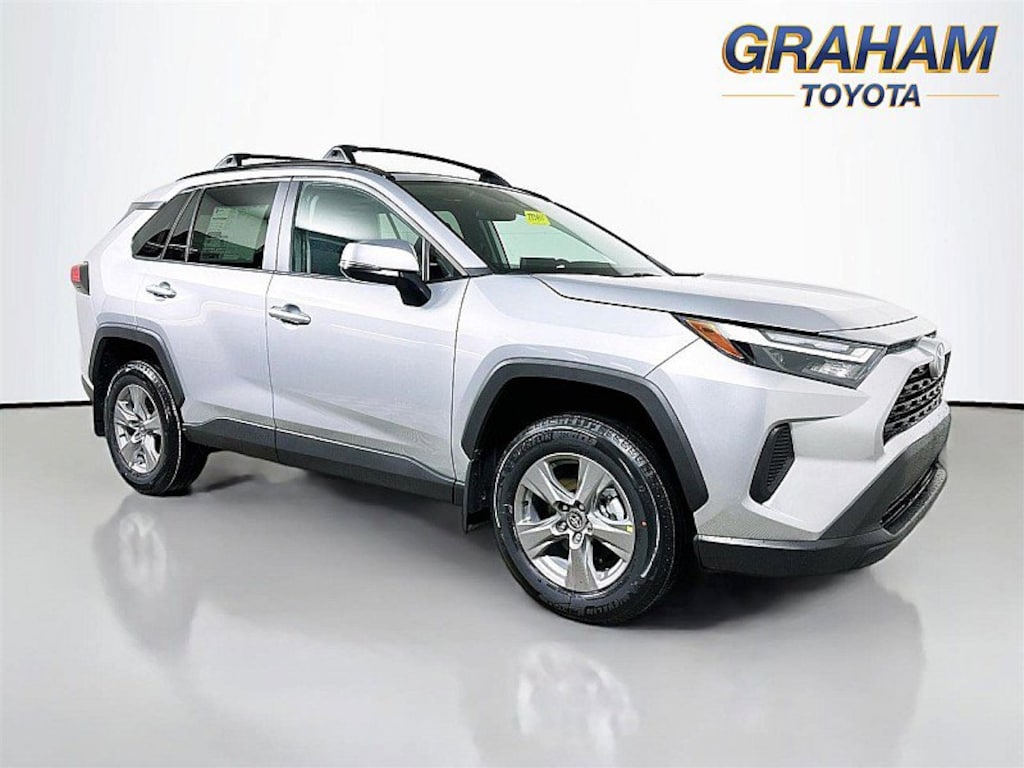 RAV4 XLE, 4D Sport Utility, 2.5L 4-Cylinder DOHC Dual VVT-i, 8-Speed Automatic, AWD, SILVER SKY META, Black Fabric Cloth, 3 Spoke Leather Heated Steering Wheel, 4-Wheel Disc Brakes, 6 Speakers, ABS brakes, Air Conditioning, All Weather Floor Liners & Cargo Liner (TMS), AM/FM radio: SiriusXM, Auto High-beam Headlights, Automatic temperature control, Brake assist, Convenience Package, Delay-off headlights, Door Sill Protector (TMS), Driver door bin, Driver vanity mirror, Electronic Stability Control, Exterior Parking Camera Rear, Fabric Seat Trim, Four wheel independent suspension, Front Bucket Seats, Front Center Armrest, Front Door Smart Key System w/Push Button Start, Front dual zone A/C, Front reading lights, Front Seat Heating, Fully automatic headlights, Heated door mirrors, Illuminated entry, Mudguards (TMS), Outside temperature display, Overhead console, Panic alarm, Passenger door bin, Passenger vanity mirror, Power door mirrors, Power driver seat, Power windows, Radio data system, Radio: AM/FM/XM Audio System, Rear seat center armrest, Rear window defroster, Rear window wiper, Remote keyless entry, Roof Rack Cross Bars (TMS), Speed control, Speed-sensing steering, Split folding rear seat, Spoiler, Steering wheel mounted audio controls, Tachometer, Telescoping steering wheel, Tilt & Slide Moon Roof, Tilt steering wheel, Traction control, Trip computer, Turn signal indicator mirrors, Variably intermittent wipers, Weather Package, Wheels: 17" 5-Spoke Silver Alloy. 2025 Toyota RAV4 XLEThis is a guide only. See salesperson for additional information. All vehicles subject to prior sale. The dealership does not assume any responsibility for accuracy of the values, sale price, interest rates, terms, monthly payment, equipment, mileage, or for any errors or omissions of the dealership. Please verify all information for accuracy prior to purchase. Price plus tax, title, and a $398 documentary fee . 27/33 City/Highway MPG INCLUDES TOYOTACARE -ToyotaCare is a no cost maintenance plan with 24-hour roadside assistance. The ToyotaCare plan covers normal factory scheduled service for 2 years or 25,000 miles, whichever comes first1. 24-hour roadside assistance is also included for 2 years, regardless of mileage.