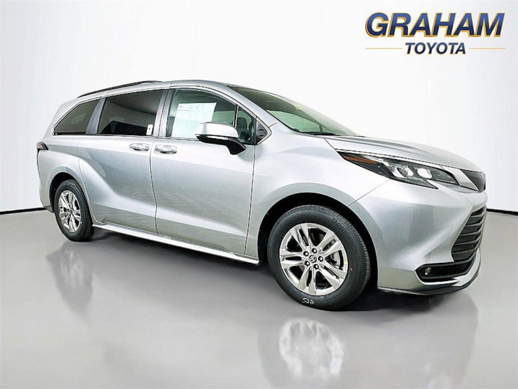 Sienna XLE 7 Passenger, 4D Passenger Van, 2.5L I4, CVT, AWD, SILVER, Chateau Artificial Leather, 1500W Inverter Output, 3rd row seats: split-bench, 4-Wheel Disc Brakes, 8 Speakers, ABS brakes, Air Conditioning, AM/FM radio: SiriusXM, Auto High-beam Headlights, Auto-dimming door mirrors, Auto-dimming Rear-View mirror, Automatic temperature control, Brake assist, Compass, Delay-off headlights, Door Sill Protectors (TMS), Driver door bin, Driver vanity mirror, Driver's Seat Mounted Armrest, Electronic Stability Control, Exterior Parking Camera Rear, Four wheel independent suspension, Front Bucket Seats, Front dual zone A/C, Front fog lights, Front Heated Bucket Seats, Front reading lights, Fully automatic headlights, Garage door transmitter: HomeLink, Heated door mirrors, Heated front seats, Illuminated entry, Lane Departure Warning System, Leather Shift Knob, Leather steering wheel, Outside temperature display, Overhead console, Panic alarm, Passenger seat mounted armrest, Passenger vanity mirror, Power door mirrors, Power driver seat, Power Liftgate, Power moonroof, Power passenger seat, Power windows, Radio data system, Radio: JBL Audio w/Navigation, Radio: Toyota Audio Multimedia w/8 Speakers, Rear air conditioning, Rear dual zone A/C, Rear reading lights, Rear window defroster, Rear window wiper, Reclining 3rd row seat, Remote keyless entry, Roof Rails, SofTex Seat Trim (EA), Speed control, Speed-sensing steering, Split folding rear seat, Spoiler, Steering wheel mounted audio controls, Tachometer, Telescoping steering wheel, Tilt steering wheel, Traction control, Trip computer, Turn signal indicator mirrors, Variably intermittent wipers, Wheels: 18" Iridium Alloy, XLE Plus Package. 2025 Toyota Sienna XLEThis is a guide only. See salesperson for additional information. All vehicles subject to prior sale. The dealership does not assume any responsibility for accuracy of the values, sale price, interest rates, terms, monthly payment, equipment, mileage, or for any errors or omissions of the dealership. Please verify all information for accuracy prior to purchase. Price plus tax, title, and a $387 documentary fee . 34/36 City/Highway MPG INCLUDES TOYOTACARE -ToyotaCare is a no cost maintenance plan with 24-hour roadside assistance. The ToyotaCare plan covers normal factory scheduled service for 2 years or 25,000 miles, whichever comes first1. 24-hour roadside assistance is also included for 2 years, regardless of mileage.