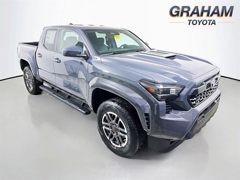 Tacoma TRD Sport, 4D Double Cab, 2.4L 4-Cylinder, 8-Speed Automatic, 4WD, UNDERGROUND, Boulder/Black (Smoke Silv, 4-Wheel Disc Brakes, 6 Speakers, ABS brakes, Air Conditioning, All Weather Floor Liners (TMS), AM/FM radio: SiriusXM, Apple CarPlay/Android Auto, Auto High-beam Headlights, Auto-dimming Rear-View mirror, Automatic temperature control, Black Chrome Exhaust Tip (TMS), Black Oval Tube Step (TMS), Brake assist, Driver door bin, Driver vanity mirror, Electronic Stability Control, Exterior Parking Camera Rear, Fabric Seat Trim, Four wheel independent suspension, Front Bucket Seats, Front Center Armrest, Front fog lights, Front reading lights, Fully automatic headlights, Heated door mirrors, Heated Seats, Illuminated entry, JBL Premium Audio, Leather Shift Knob, Leather steering wheel, Outside temperature display, Overhead console, Panic alarm, Passenger door bin, Passenger vanity mirror, Power door mirrors, Power windows, Radio: 8" Toyota Audio Multimedia, Rear window defroster, Remote keyless entry, Security system, SofTex Seat Trim, Speed control, Speed-sensing steering, Split folding rear seat, Steering wheel mounted audio controls, Tachometer, Telescoping steering wheel, Tilt steering wheel, Traction control, TRD Sport Package, Trip computer, Turn signal indicator mirrors, Variably intermittent wipers, Wheels: 18" TRD Sport Alloy. 2025 Toyota Tacoma TRD SportThis is a guide only. See salesperson for additional information. All vehicles subject to prior sale. The dealership does not assume any responsibility for accuracy of the values, sale price, interest rates, terms, monthly payment, equipment, mileage, or for any errors or omissions of the dealership. Please verify all information for accuracy prior to purchase. Price plus tax, title, and a $387 documentary fee . INCLUDES TOYOTACARE -ToyotaCare is a no cost maintenance plan with 24-hour roadside assistance. The ToyotaCare plan covers normal factory scheduled service for 2 years or 25,000 miles, whichever comes first1. 24-hour roadside assistance is also included for 2 years, regardless of mileage.