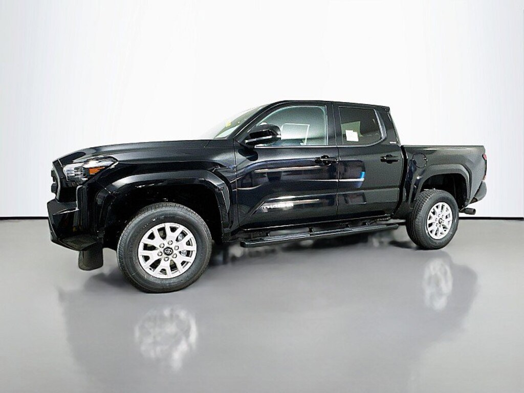 Tacoma SR5, 4D Double Cab, 2.4L 4-Cylinder, 8-Speed Automatic, 4WD, BLACK, Black Fabric W/Smoke Silv Cloth, 4-Wheel Disc Brakes, 6 Speakers, ABS brakes, Air Conditioning, All Weather Floor Liners (TMS), Alloy wheels, AM/FM radio: SiriusXM, Apple CarPlay/Android Auto, Auto High-beam Headlights, Auto-dimming Rear-View mirror, Black Oval Tube Step (TMS), Brake assist, Driver door bin, Electronic Stability Control, Exterior Parking Camera Rear, Fabric Seat Trim, Four wheel independent suspension, Front Bucket Seats, Front Center Armrest, Front fog lights, Front reading lights, Fully automatic headlights, Heated door mirrors, Heated Seats, Illuminated entry, JBL Premium Audio, Outside temperature display, Overhead console, Panic alarm, Power door mirrors, Power windows, Radio: 8" Toyota Audio Multimedia, Rear window defroster, Remote keyless entry, Speed control, Speed-sensing steering, Split folding rear seat, Steering wheel mounted audio controls, Tachometer, Telescoping steering wheel, Tilt steering wheel, Traction control, Trip computer, Variably intermittent wipers. 2025 Toyota Tacoma SR5This is a guide only. See salesperson for additional information. All vehicles subject to prior sale. The dealership does not assume any responsibility for accuracy of the values, sale price, interest rates, terms, monthly payment, equipment, mileage, or for any errors or omissions of the dealership. Please verify all information for accuracy prior to purchase. Price plus tax, title, and a $387 documentary fee . INCLUDES TOYOTACARE -ToyotaCare is a no cost maintenance plan with 24-hour roadside assistance. The ToyotaCare plan covers normal factory scheduled service for 2 years or 25,000 miles, whichever comes first1. 24-hour roadside assistance is also included for 2 years, regardless of mileage.