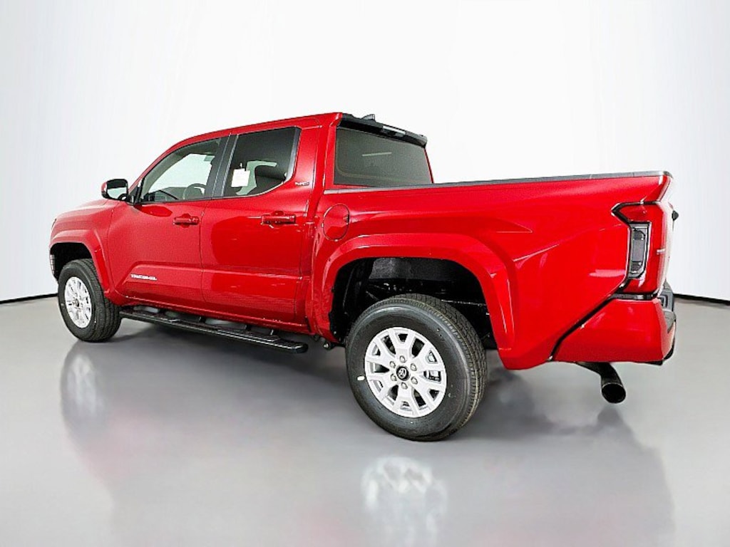 Tacoma SR5, 4D Double Cab, 2.4L 4-Cylinder, 8-Speed Automatic, 4WD, SUPER SONIC RED, Black Fabric W/Smoke Silv Cloth, 4-Wheel Disc Brakes, 6 Speakers, ABS brakes, Air Conditioning, All Weather Floor Liners (TMS), AM/FM radio: SiriusXM, Apple CarPlay/Android Auto, Auto High-beam Headlights, Auto-dimming Rear-View mirror, Black Oval Tube Step (TMS), Brake assist, Driver door bin, Electronic Stability Control, Exterior Parking Camera Rear, Fabric Seat Trim, Four wheel independent suspension, Front Bucket Seats, Front Center Armrest, Front fog lights, Front reading lights, Fully automatic headlights, Heated door mirrors, Illuminated entry, JBL Premium Audio, Outside temperature display, Overhead console, Panic alarm, Passenger door bin, Power door mirrors, Power windows, Radio: 8" Toyota Audio Multimedia, Rear window defroster, Remote keyless entry, Speed control, Speed-sensing steering, Split folding rear seat, Steering wheel mounted audio controls, Tachometer, Telescoping steering wheel, Tilt steering wheel, Traction control, Trip computer, Variably intermittent wipers, Wheels: 17" Styled Alloy. 2025 Toyota Tacoma SR5This is a guide only. See salesperson for additional information. All vehicles subject to prior sale. The dealership does not assume any responsibility for accuracy of the values, sale price, interest rates, terms, monthly payment, equipment, mileage, or for any errors or omissions of the dealership. Please verify all information for accuracy prior to purchase. Price plus tax, title, and a $387 documentary fee . INCLUDES TOYOTACARE -ToyotaCare is a no cost maintenance plan with 24-hour roadside assistance. The ToyotaCare plan covers normal factory scheduled service for 2 years or 25,000 miles, whichever comes first1. 24-hour roadside assistance is also included for 2 years, regardless of mileage.