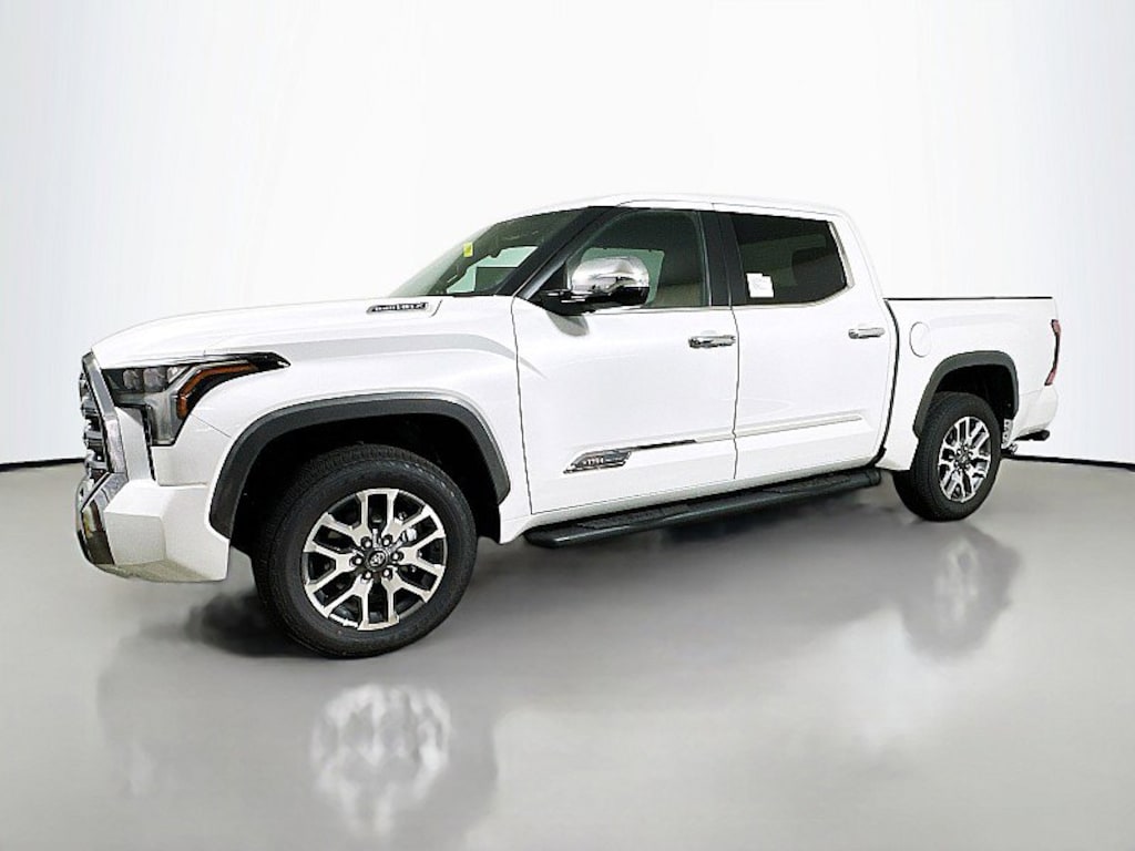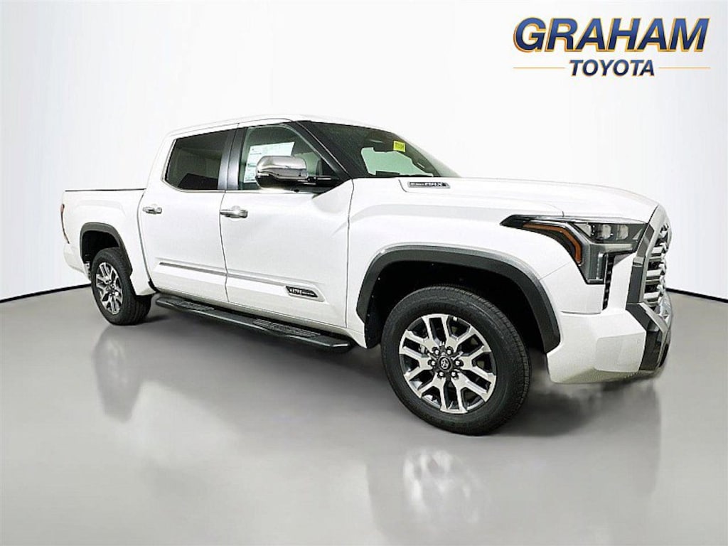 Tundra Hybrid 1794 Edition, 4D Crew Cab, 3.4L V6, 10-Speed Automatic, 4WD, WIND CHILL PRL, Saddle Tan Premium Lthr Leather, 12 Speakers, 4-Wheel Disc Brakes, ABS brakes, Air Conditioning, AM/FM radio: SiriusXM, Apple CarPlay/Android Auto, Auto High-beam Headlights, Auto-dimming door mirrors, Auto-dimming Rear-View mirror, Automatic temperature control, Bed Step (TMS), Brake assist, Delay-off headlights, Driver door bin, Driver vanity mirror, Dual front impact airbags, Dual front side impact airbags, Dual-Step Running Board - Black (TMS), Electronic Stability Control, Emergency communication system: Safety Connect (10-year trial), Exterior Parking Camera Rear, Front anti-roll bar, Front Bucket Seats, Front Center Armrest, Front dual zone A/C, Front fog lights, Front reading lights, Front wheel independent suspension, Fully automatic headlights, Garage door transmitter: HomeLink, Heated & Ventilated Front Bucket Seats, Heated door mirrors, Heated front seats, Heated rear seats, Heated steering wheel, Illuminated entry, Knee airbag, Leather Shift Knob, Leather steering wheel, Low tire pressure warning, Memory seat, Navigation System, Occupant sensing airbag, Outside temperature display, Overhead airbag, Overhead console, Panic alarm, Passenger door bin, Passenger vanity mirror, Power door mirrors, Power driver seat, Power moonroof, Power passenger seat, Power windows, Premium Leather Seat Trim, Radio data system, Radio: Premium Audio w/JBL, Rain sensing wipers, Rear reading lights, Rear seat center armrest, Rear step bumper, Rear window defroster, Remote keyless entry, Security system, Speed control, Speed-sensing steering, Split folding rear seat, Steering wheel memory, Tachometer, Telescoping steering wheel, Traction control, Trip computer, Turn signal indicator mirrors, Variably intermittent wipers, Ventilated front seats, Ventilated rear seats, Voltmeter, Wheels: 20" x 8" Machined-Finish Alloy. 2025 Toyota Tundra Hybrid 1794 Edition $7,919 off MSRP!This is a guide only. See salesperson for additional information. All vehicles subject to prior sale. The dealership does not assume any responsibility for accuracy of the values, sale price, interest rates, terms, monthly payment, equipment, mileage, or for any errors or omissions of the dealership. Please verify all information for accuracy prior to purchase. Price plus tax, title, and a $387 documentary fee . INCLUDES TOYOTACARE -ToyotaCare is a no cost maintenance plan with 24-hour roadside assistance. The ToyotaCare plan covers normal factory scheduled service for 2 years or 25,000 miles, whichever comes first1. 24-hour roadside assistance is also included for 2 years, regardless of mileage. Price includes: $3000 - TMS Customer Cash . Exp. 11/03/2025