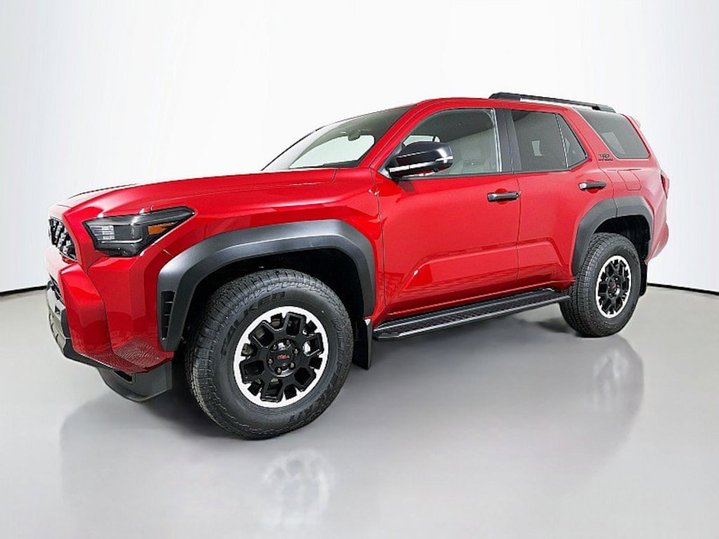 4Runner TRD Off-Road Premium, 4D Sport Utility, 2.4L 4-Cylinder, 8-Speed Automatic, 4WD, SUPER SONIC RED, Black Artificial Leather, 15 Speakers, 4-Wheel Disc Brakes, 4runner All Weather Cargo Tray, 4runner All Weather Floor Mats, ABS brakes, Air Conditioning, AM/FM radio: SiriusXM, Apple CarPlay/Android Auto, Auto High-beam Headlights, Auto-dimming Rear-View mirror, Automatic temperature control, Brake assist, Compass, Driver door bin, Driver vanity mirror, Electronic Stability Control, Exterior Parking Camera Rear, Front and Rear Molded Black 4Runner Mudguards, Front Bucket Seats, Front Center Armrest, Front Color Keyed Door Edge Guards, Front dual zone A/C, Front fog lights, Front reading lights, Heated and Ventilated Front Bucket Seats, Heated door mirrors, Heated front seats, Heated steering wheel, Illuminated entry, Intelligent Inside Rear View Mirror, Interior D-Pillar Cargo Lights, Leather Shift Knob, Leather steering wheel, Memory seat, Moonroof, Navigation System, Outside temperature display, Overhead console, Panic alarm, Passenger door bin, Passenger vanity mirror, Power door mirrors, Power driver seat, Power passenger seat, Power windows, Radio: 14" Audio, Rear seat center armrest, Rear window defroster, Rear window wiper, Remote keyless entry, Security system, SofTex Seat Trim, Speed control, Speed-sensing steering, Split folding rear seat, Spoiler, Steering wheel mounted audio controls, Tachometer, Telescoping steering wheel, Tilt steering wheel, Traction control, Trip computer, Turn signal indicator mirrors, Variably intermittent wipers, Ventilated front seats, Wheels: 18" Matte-Black Painted. 2026 Toyota 4Runner TRD Off-Road PremiumThis is a guide only. See salesperson for additional information. All vehicles subject to prior sale. The dealership does not assume any responsibility for accuracy of the values, sale price, interest rates, terms, monthly payment, equipment, mileage, or for any errors or omissions of the dealership. Please verify all information for accuracy prior to purchase. Price plus tax, title, and a $398 documentary fee . INCLUDES TOYOTACARE -ToyotaCare is a no cost maintenance plan with 24-hour roadside assistance. The ToyotaCare plan covers normal factory scheduled service for 2 years or 25,000 miles, whichever comes first1. 24-hour roadside assistance is also included for 2 years, regardless of mileage.