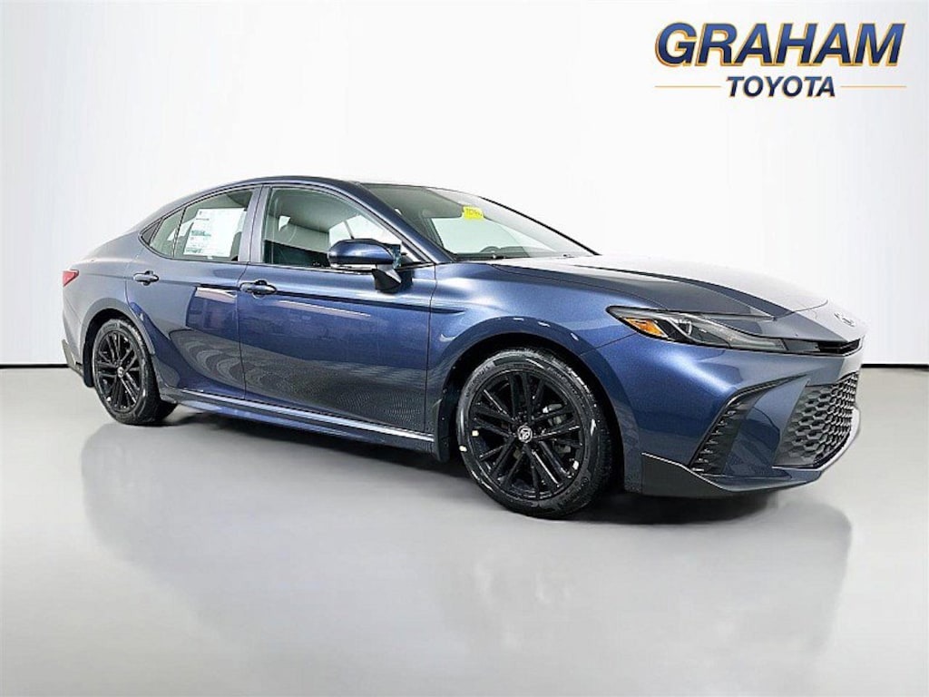 Camry SE, 4D Sedan, 2.5L 4-Cylinder 16V DOHC, eCVT, FWD, DK COSMOS, Blk & Fabric Artificial Leather, 4-Wheel Disc Brakes, 6 Speakers, ABS brakes, Air Conditioning, AM/FM radio: SiriusXM, Apple CarPlay/Android Auto, Auto High-beam Headlights, Automatic temperature control, Brake assist, Delay-off headlights, Driver vanity mirror, Electronic Stability Control, Exterior Parking Camera Rear, Four wheel independent suspension, Front Bucket Seats, Front Center Armrest, Front dual zone A/C, Front reading lights, Front Seats, Fully automatic headlights, Heated door mirrors, Heated Front Seats, Illuminated entry, Leather Shift Knob, Leather steering wheel, Outside temperature display, Overhead console, Panic alarm, Passenger door bin, Passenger vanity mirror, Power driver seat, Power windows, Radio data system, Radio: 8" Toyota Audio Multimedia, Rear reading lights, Rear seat center armrest, Rear window defroster, Remote keyless entry, Security system, Speed control, Speed-sensing steering, Split folding rear seat, Spoiler, Steering wheel mounted audio controls, Telescoping steering wheel, Tilt steering wheel, Traction control, Trip computer, Turn signal indicator mirrors, Variably intermittent wipers, Wheels: 18" Multi-Spoke Black-Finished Alloy. 2026 Toyota Camry SEThis is a guide only. See salesperson for additional information. All vehicles subject to prior sale. The dealership does not assume any responsibility for accuracy of the values, sale price, interest rates, terms, monthly payment, equipment, mileage, or for any errors or omissions of the dealership. Please verify all information for accuracy prior to purchase. Price plus tax, title, and a $387 documentary fee . 48/47 City/Highway MPG INCLUDES TOYOTACARE -ToyotaCare is a no cost maintenance plan with 24-hour roadside assistance. The ToyotaCare plan covers normal factory scheduled service for 2 years or 25,000 miles, whichever comes first1. 24-hour roadside assistance is also included for 2 years, regardless of mileage.