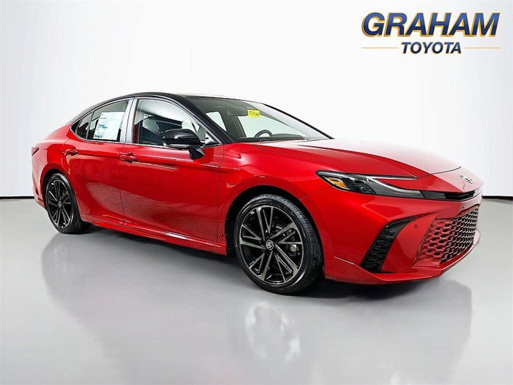Camry XSE, 4D Sedan, 2.5L 4-Cylinder 16V DOHC, eCVT, FWD, SUPERSONIC RED, Blk Lth Leather, 10" Color Head-Up Display, 4-Wheel Disc Brakes, 9-Speaker JBL Premium Audio System, ABS brakes, Air Conditioning, All Weather Floor Protection, AM/FM radio: SiriusXM, Apple CarPlay/Android Auto, Auto High-beam Headlights, Auto-dimming Rear-View mirror, Automatic temperature control, Brake assist, Delay-off headlights, Digital Key Compatibility, Door Sill Enhancement, Driver door bin, Driver Monitor Camera, Driver vanity mirror, Driver's Seat and Outer-Mirror Memory, Electronic Stability Control, Exterior Parking Camera Rear, Four wheel independent suspension, Front and Rear Parking Assist with Automatic Braking, Front Bucket Seats, Front Center Armrest, Front Cross-Traffic Alert, Front dual zone A/C, Front reading lights, Fully automatic headlights, Garage door transmitter: HomeLink, Heated door mirrors, Heated Front Seats, Heated front seats, Heated steering wheel, Illuminated entry, Lane Change Assist, Leather Seat Trim, Leather Shift Knob, Leather steering wheel, Navigation system: Drive Connect (1 year trial) includes Cloud Navigation with real time traffic and Google POI, Outside temperature display, Overhead console, Panic alarm, Panoramic Glass Roof, Panoramic View Monitor, Passenger door bin, Passenger vanity mirror, Power door mirrors, Power driver seat, Power passenger seat, Power windows, Premium Plus Package, Radio data system, Radio: 12.3" Toyota Multimedia Audio, Rain-Sensing Windshield Wipers, Rear Cross-Traffic Braking, Rear reading lights, Rear seat center armrest, Rear window defroster, Remote keyless entry, Security system, Speed control, Speed-sensing steering, Split folding rear seat, Spoiler, Steering wheel mounted audio controls, Telescoping steering wheel, Tilt steering wheel, Traction control, Traffic Jam Assist, Trip computer, Turn signal indicator mirrors, Two-Tone Color, Variably intermittent wipers, Ventilated Front Seats, Wheels: 19" Smoked Gray and Black-Finished Alloy. 2026 Toyota Camry XSEThis is a guide only. See salesperson for additional information. All vehicles subject to prior sale. The dealership does not assume any responsibility for accuracy of the values, sale price, interest rates, terms, monthly payment, equipment, mileage, or for any errors or omissions of the dealership. Please verify all information for accuracy prior to purchase. Price plus tax, title, and a $398 documentary fee . 48/47 City/Highway MPG INCLUDES TOYOTACARE -ToyotaCare is a no cost maintenance plan with 24-hour roadside assistance. The ToyotaCare plan covers normal factory scheduled service for 2 years or 25,000 miles, whichever comes first1. 24-hour roadside assistance is also included for 2 years, regardless of mileage.