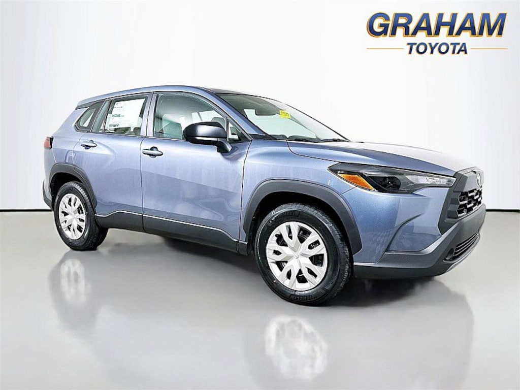 We can handle everything virtually, Corolla Cross L, 4D Sport Utility, 2.0L I4 PDI DOHC 16V LEV3-SULEV30 169hp, CVT, AWD, CELESTITE, Lt Gry Fabric Cloth, 4-Wheel Disc Brakes, 6 Speakers, ABS brakes, Air Conditioning, All Weather Floor/Cargo Liners, AM/FM radio: SiriusXM, Auto High-beam Headlights, Brake assist, Delay-off headlights, Driver door bin, Driver vanity mirror, Electronic Stability Control, Exterior Parking Camera Rear, Fabric Seat Trim, Four wheel independent suspension, Front Bucket Seats, Front Center Armrest, Front reading lights, Front Seats, Heated door mirrors, Illuminated entry, Outside temperature display, Panic alarm, Passenger vanity mirror, Power door mirrors, Power windows, Radio data system, Radio: 8" Toyota Audio Multimedia with 6 Speakers, Rear window defroster, Remote keyless entry, Speed control, Split folding rear seat, Spoiler, Steering wheel mounted audio controls, Tachometer, Telescoping steering wheel, Tilt steering wheel, Traction control, Trip computer, Turn signal indicator mirrors, Variably intermittent wipers, Wheels: 17" Steel with Covers. 2026 Toyota Corolla Cross LThis is a guide only. See salesperson for additional information. All vehicles subject to prior sale. The dealership does not assume any responsibility for accuracy of the values, sale price, interest rates, terms, monthly payment, equipment, mileage, or for any errors or omissions of the dealership. Please verify all information for accuracy prior to purchase. Price plus tax, title, and a $398 documentary fee . 29/31 City/Highway MPG INCLUDES TOYOTACARE -ToyotaCare is a no cost maintenance plan with 24-hour roadside assistance. The ToyotaCare plan covers normal factory scheduled service for 2 years or 25,000 miles, whichever comes first1. 24-hour roadside assistance is also included for 2 years, regardless of mileage.