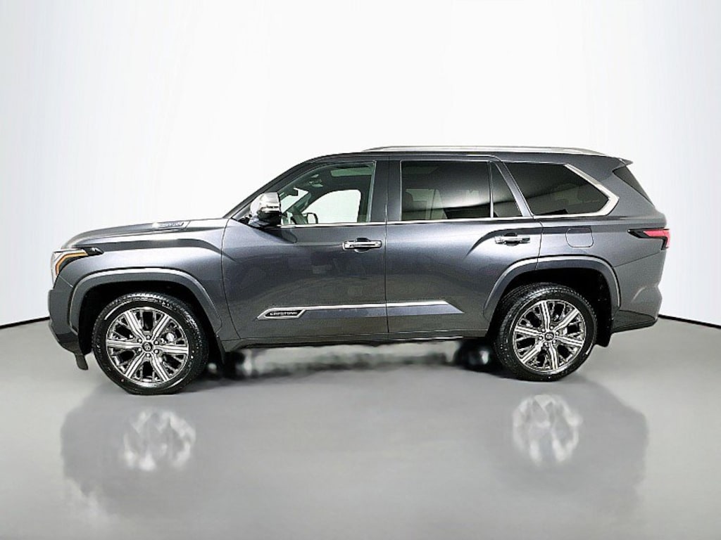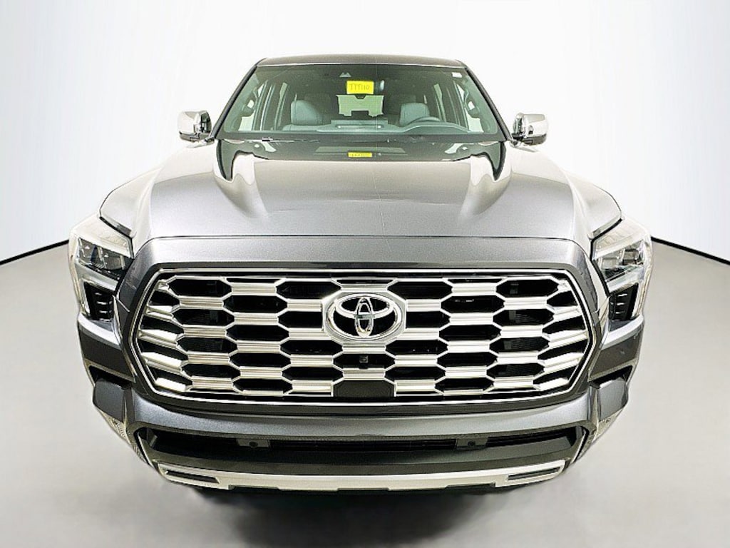 Sequoia Capstone, 4D Sport Utility, V6 Hybrid, 10-Speed Automatic, 4WD, MAGNETIC GRAY, Shale Leather, 14 Speakers, 3rd row seats: split-bench, 4-Wheel Disc Brakes, ABS brakes, Air Conditioning, AM/FM radio: SiriusXM, Anti-whiplash front head restraints, Apple CarPlay/Android Auto, Auto High-beam Headlights, Auto tilt-away steering wheel, Auto-dimming door mirrors, Auto-dimming Rear-View mirror, Automatic temperature control, Brake assist, Capstone Grade Package, Center Console Safe, Compass, Delay-off headlights, Door Edge Guard, Driver door bin, Driver vanity mirror, Electronic Stability Control, Exterior Parking Camera Rear, Front Bucket Seats, Front Center Armrest w/Storage, Front dual zone A/C, Front fog lights, Front reading lights, Fully automatic headlights, Garage door transmitter: HomeLink, Genuine wood door panel insert, Headlight cleaning, Heads-Up Display, Heated and Ventilated Front Seats, Heated door mirrors, Heated front seats, Heated rear seats, Heated steering wheel, Illuminated entry, Leather Seat Trim, Leather Shift Knob, Leather steering wheel, Memory seat, Navigation system: Drive Connect (1 year trial) includes Cloud Navigation with real time traffic and Google POI, Outside temperature display, Overhead console, Panic alarm, Passenger door bin, Passenger vanity mirror, Power door mirrors, Power driver seat, Power Liftgate, Power moonroof, Power passenger seat, Power windows, Premium audio system: JBL, Radio: 14" Toyota Audio Multimedia with JBL Premium Audio, Rain sensing wipers, Rear air conditioning, Rear reading lights, Rear seat center armrest, Rear window defroster, Rear window wiper, Reclining 3rd row seat, Remote keyless entry, Security system, Speed control, Speed-sensing steering, Split folding rear seat, Spoiler, Sport steering wheel, Steering wheel mounted audio controls, Tachometer, Telescoping steering wheel, Tilt steering wheel, Traction control, Trip computer, Turn signal indicator mirrors, Variably intermittent wipers, Ventilated front seats, Ventilated rear seats, Voltmeter, Wheels: 22" Dark Chrome Machined-Finish Alloy. 2026 Toyota Sequoia CapstoneThis is a guide only. See salesperson for additional information. All vehicles subject to prior sale. The dealership does not assume any responsibility for accuracy of the values, sale price, interest rates, terms, monthly payment, equipment, mileage, or for any errors or omissions of the dealership. Please verify all information for accuracy prior to purchase. Price plus tax, title, and a $398 documentary fee . INCLUDES TOYOTACARE -ToyotaCare is a no cost maintenance plan with 24-hour roadside assistance. The ToyotaCare plan covers normal factory scheduled service for 2 years or 25,000 miles, whichever comes first1. 24-hour roadside assistance is also included for 2 years, regardless of mileage.