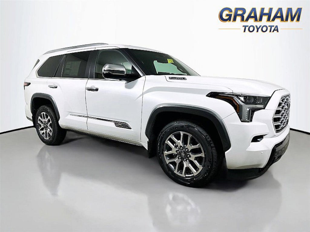 Sequoia 1794 Edition, 4D Sport Utility, V6 Hybrid, 10-Speed Automatic, 4WD, WIND CHILL PRL, Saddle Tan Leather, 14 Speakers, 1794 Grade Package, 20" Alloy Wheels, 3rd row seats: split-bench, 4-Wheel Disc Brakes, ABS brakes, Air Conditioning, AM/FM radio: SiriusXM, Apple CarPlay/Android Auto, Auto High-beam Headlights, Auto tilt-away steering wheel, Auto-dimming door mirrors, Auto-dimming Rear-View mirror, Automatic temperature control, Brake assist, Compass, Delay-off headlights, Door Edge Guard, Driver door bin, Driver vanity mirror, Electronic Stability Control, Exterior Parking Camera Rear, Front Bucket Seats, Front Center Armrest w/Storage, Front dual zone A/C, Front fog lights, Front reading lights, Fully automatic headlights, Garage door transmitter: HomeLink, Genuine wood door panel insert, Headlight cleaning, Heated and Ventilated Front Seats, Heated door mirrors, Heated front seats, Heated rear seats, Heated steering wheel, Illuminated entry, Leather Shift Knob, Leather steering wheel, Memory seat, Navigation system: Drive Connect (1 year trial) includes Cloud Navigation with real time traffic and Google POI, Outside temperature display, Overhead console, Panic alarm, Passenger door bin, Passenger vanity mirror, Power door mirrors, Power driver seat, Power Liftgate, Power moonroof, Power passenger seat, Power Running Boards, Power windows, Premium audio system: JBL, Premium Leather Seat Trim, Radio: 14" Toyota Audio Multimedia with JBL Premium Audio, Rain sensing wipers, Rear air conditioning, Rear reading lights, Rear seat center armrest, Rear window defroster, Rear window wiper, Reclining 3rd row seat, Remote keyless entry, Security system, Speed control, Speed-sensing steering, Split folding rear seat, Spoiler, Sport steering wheel, Steering wheel mounted audio controls, Tachometer, Telescoping steering wheel, Tilt steering wheel, Traction control, Trip computer, Turn signal indicator mirrors, Variably intermittent wipers, Ventilated front seats, Ventilated rear seats, Voltmeter. 2026 Toyota Sequoia 1794 EditionThis is a guide only. See salesperson for additional information. All vehicles subject to prior sale. The dealership does not assume any responsibility for accuracy of the values, sale price, interest rates, terms, monthly payment, equipment, mileage, or for any errors or omissions of the dealership. Please verify all information for accuracy prior to purchase. Price plus tax, title, and a $398 documentary fee . INCLUDES TOYOTACARE -ToyotaCare is a no cost maintenance plan with 24-hour roadside assistance. The ToyotaCare plan covers normal factory scheduled service for 2 years or 25,000 miles, whichever comes first1. 24-hour roadside assistance is also included for 2 years, regardless of mileage.