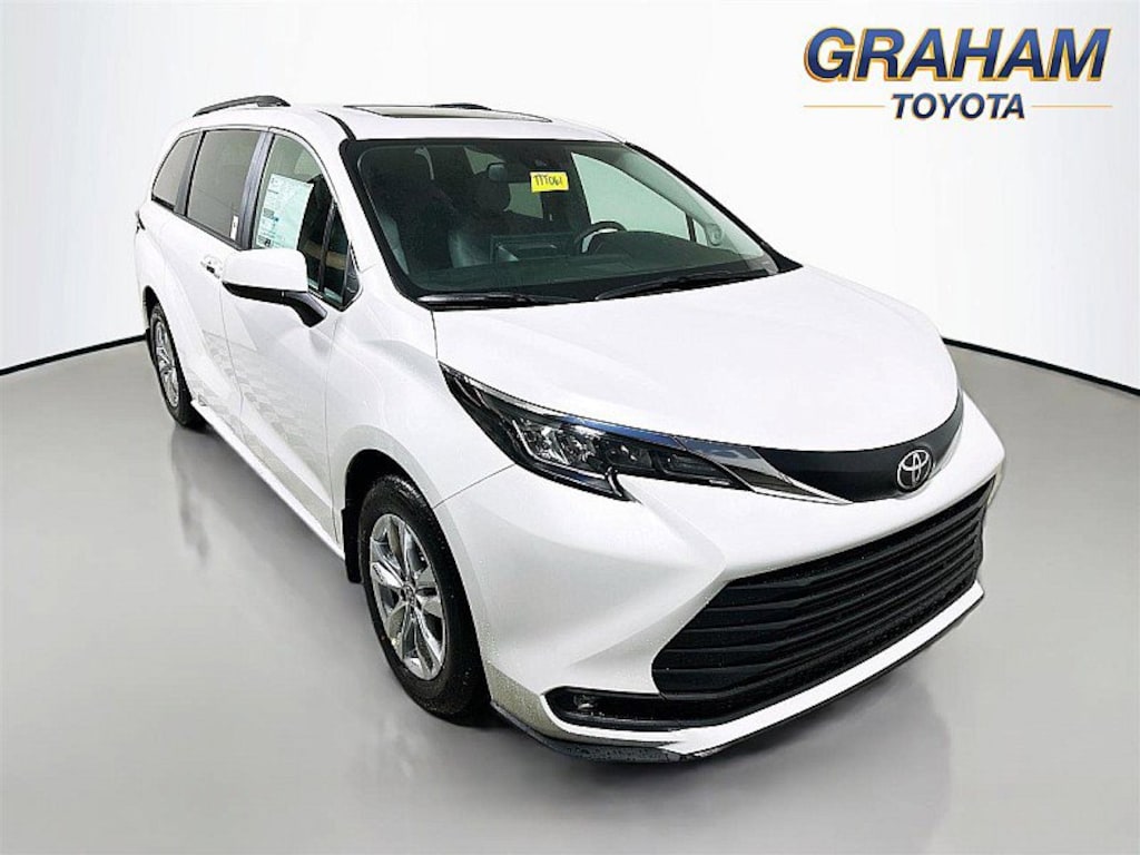 Sienna XLE 7 Passenger, 4D Passenger Van, 2.5L I4, CVT, AWD, WIND CHILL PRL, Gray Artificial Leather, 1500 Watt Inverter Output, 17" Alloy Wheels, 3rd row seats: split-bench, 4-Wheel Disc Brakes, 8 Speakers, ABS brakes, Air Conditioning, All Weather Floor Liners, Alloy wheels, AM/FM radio: SiriusXM, Apple CarPlay/Android Auto, Auto High-beam Headlights, Auto-dimming door mirrors, Auto-dimming Rear-View mirror, Automatic temperature control, Brake assist, Compass, Delay-off headlights, Door Sill Protectors, Driver door bin, Driver vanity mirror, Driver's Seat Mounted Armrest, Electronic Stability Control, Exterior Parking Camera Rear, Four wheel independent suspension, Front Bucket Seats, Front dual zone A/C, Front fog lights, Front Heated Bucket Seats, Front reading lights, Fully automatic headlights, Garage door transmitter: HomeLink, Heated door mirrors, Heated front seats, Illuminated entry, Lane Departure Warning System, Leather Shift Knob, Leather steering wheel, Mudguards, Outside temperature display, Overhead console, Panic alarm, Passenger door bin, Passenger seat mounted armrest, Passenger vanity mirror, Power door mirrors, Power driver seat, Power Liftgate, Power moonroof, Power passenger seat, Power windows, Premium Paint, Radio data system, Radio: Toyota Audio Multimedia with 8 Speakers, Radio: Toyota JBL Audio Multimedia System, Rear air conditioning, Rear anti-roll bar, Rear dual zone A/C, Rear reading lights, Rear side impact airbag, Rear window defroster, Rear window wiper, Reclining 3rd row seat, Remote keyless entry, SofTex Seat Trim, Speed control, Speed-sensing steering, Split folding rear seat, Spoiler, Steering wheel mounted audio controls, Tachometer, Telescoping steering wheel, Tilt steering wheel, Traction control, Trip computer, Turn signal indicator mirrors, Variably intermittent wipers, Wheels: 18" Iridium Alloy. 2026 Toyota Sienna XLEThis is a guide only. See salesperson for additional information. All vehicles subject to prior sale. The dealership does not assume any responsibility for accuracy of the values, sale price, interest rates, terms, monthly payment, equipment, mileage, or for any errors or omissions of the dealership. Please verify all information for accuracy prior to purchase. Price plus tax, title, and a $387 documentary fee . 34/36 City/Highway MPG INCLUDES TOYOTACARE -ToyotaCare is a no cost maintenance plan with 24-hour roadside assistance. The ToyotaCare plan covers normal factory scheduled service for 2 years or 25,000 miles, whichever comes first1. 24-hour roadside assistance is also included for 2 years, regardless of mileage.