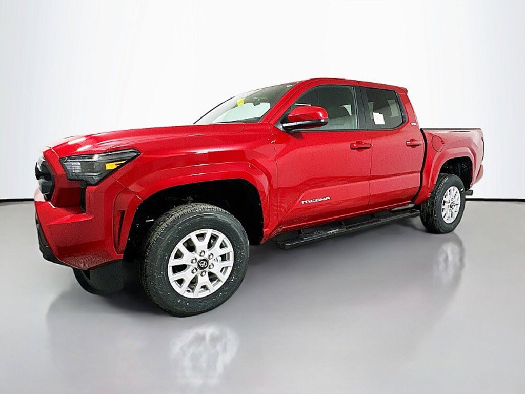 Tacoma SR5, 4D Double Cab, 2.4L 4-Cylinder, 8-Speed Automatic, 4WD, SUPER SONIC RED, Black Cloth, 4-Wheel Disc Brakes, 6 Speakers, ABS brakes, Air Conditioning, All Weather Floor Liners, AM/FM radio: SiriusXM, Apple CarPlay/Android Auto, Auto High-beam Headlights, Auto-dimming Rear-View mirror, Black Oval Tube Step, Brake assist, Driver door bin, Electronic Stability Control, Exterior Parking Camera Rear, Fabric Seat Trim, Four wheel independent suspension, Front Bucket Seats, Front Center Armrest, Front fog lights, Front reading lights, Fully automatic headlights, Heated door mirrors, Heated Front Seats, Illuminated entry, Outside temperature display, Overhead console, Panic alarm, Passenger door bin, Power door mirrors, Power windows, Radio: 8" Toyota Audio Multimedia, Rear window defroster, Remote keyless entry, Speed control, Speed-sensing steering, Split folding rear seat, Steering wheel mounted audio controls, Tachometer, Telescoping steering wheel, Tilt steering wheel, Traction control, Trip computer, Variably intermittent wipers, Wheels: 17" Styled Alloy. 2026 Toyota Tacoma SR5This is a guide only. See salesperson for additional information. All vehicles subject to prior sale. The dealership does not assume any responsibility for accuracy of the values, sale price, interest rates, terms, monthly payment, equipment, mileage, or for any errors or omissions of the dealership. Please verify all information for accuracy prior to purchase. Price plus tax, title, and a $387 documentary fee . INCLUDES TOYOTACARE -ToyotaCare is a no cost maintenance plan with 24-hour roadside assistance. The ToyotaCare plan covers normal factory scheduled service for 2 years or 25,000 miles, whichever comes first1. 24-hour roadside assistance is also included for 2 years, regardless of mileage.