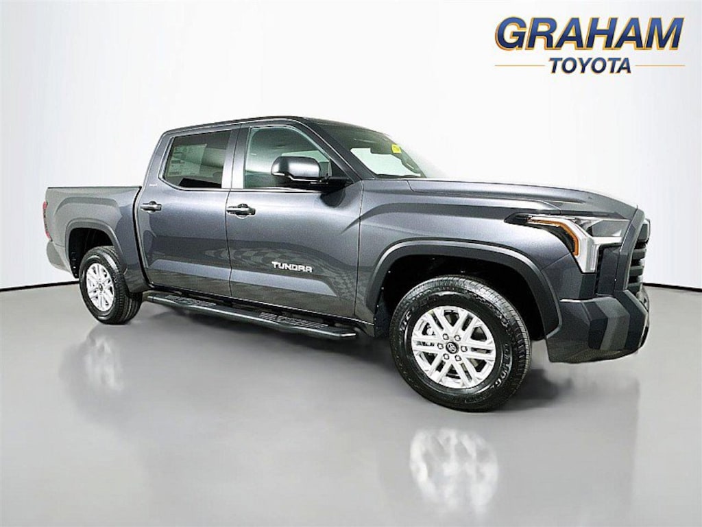 2026 TUNDRA SR5 CREWMAN, Tundra SR5, 4D CrewMax, 3.4L V6, 10-Speed Automatic, 4WD, MAGNETIC GRAY, Black Cloth, 4-Way Manual Front Seats, 4-Wheel Disc Brakes, 8-Way Power-Adjustable Heated Front Seats, 9 Speakers, ABS brakes, Active Cruise Control, Air Conditioning, Alloy wheels, AM/FM radio: SiriusXM, Apple CarPlay/Android Auto, Auto High-beam Headlights, Automatic Power Tailgate with Easy Closing, Automatic temperature control, Blind Spot Monitor w/Lane Change Assist, Brake assist, Delay-off headlights, Driver door bin, Driver vanity mirror, Electronic Stability Control, Exterior Parking Camera Rear, Fabric Seat Trim (FB), Front Bucket Seats, Front Center Armrest, Front fog lights, Front reading lights, Fully automatic headlights, Heated door mirrors, Illuminated entry, Leather Seat Trim, Low tire pressure warning, Outside temperature display, Overhead console, Panic alarm, Parking Support Alert/Brake, Passenger vanity mirror, Power door mirrors, Power driver seat, Power windows, Radio data system, Radio: Audio Multimedia System, Rear reading lights, Rear window defroster, Remote keyless entry, Safety Connect, Security system, Speed control, Speed-sensing steering, Split folding rear seat, SR5 Convenience Package, SR5 Premium Package, Steering wheel mounted audio controls, Tachometer, Telescoping steering wheel, Tilt steering wheel, Traction control, Trip computer, Variably intermittent wipers, Voltmeter. 2026 Toyota Tundra SR5 $4,707 off MSRP!This is a guide only. See salesperson for additional information. All vehicles subject to prior sale. The dealership does not assume any responsibility for accuracy of the values, sale price, interest rates, terms, monthly payment, equipment, mileage, or for any errors or omissions of the dealership. Please verify all information for accuracy prior to purchase. Price plus tax, title, and a $387 documentary fee . INCLUDES TOYOTACARE -ToyotaCare is a no cost maintenance plan with 24-hour roadside assistance. The ToyotaCare plan covers normal factory scheduled service for 2 years or 25,000 miles, whichever comes first1. 24-hour roadside assistance is also included for 2 years, regardless of mileage. Price includes: $1000 - TMS Customer Cash . Exp. 11/03/2025
